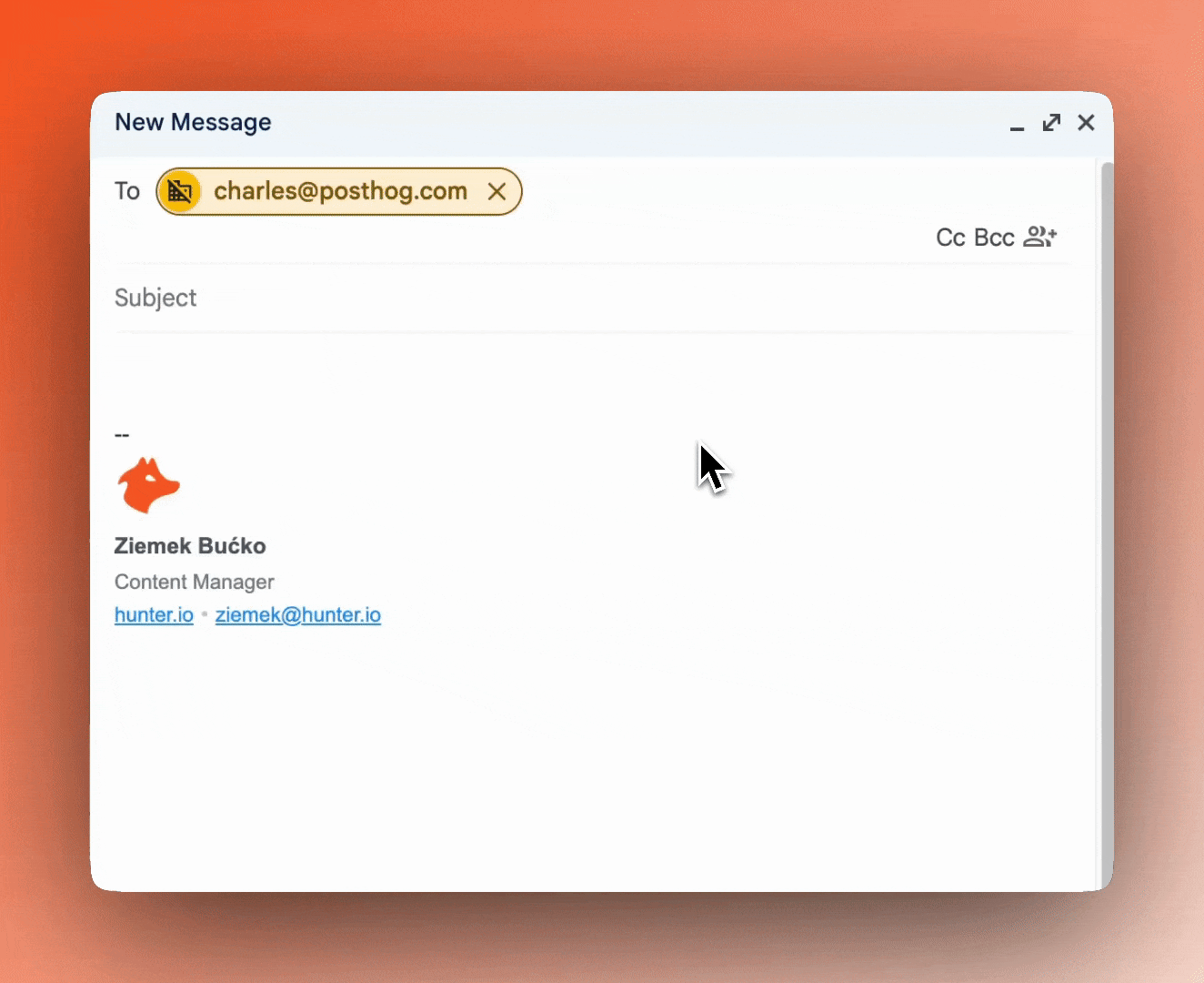 The easiest way to verify an email address without sending an email is to use an email verification tool like Hunter's email checker, which automatically runs multiple technical checks on the address to know if it exists and can receive your emails.