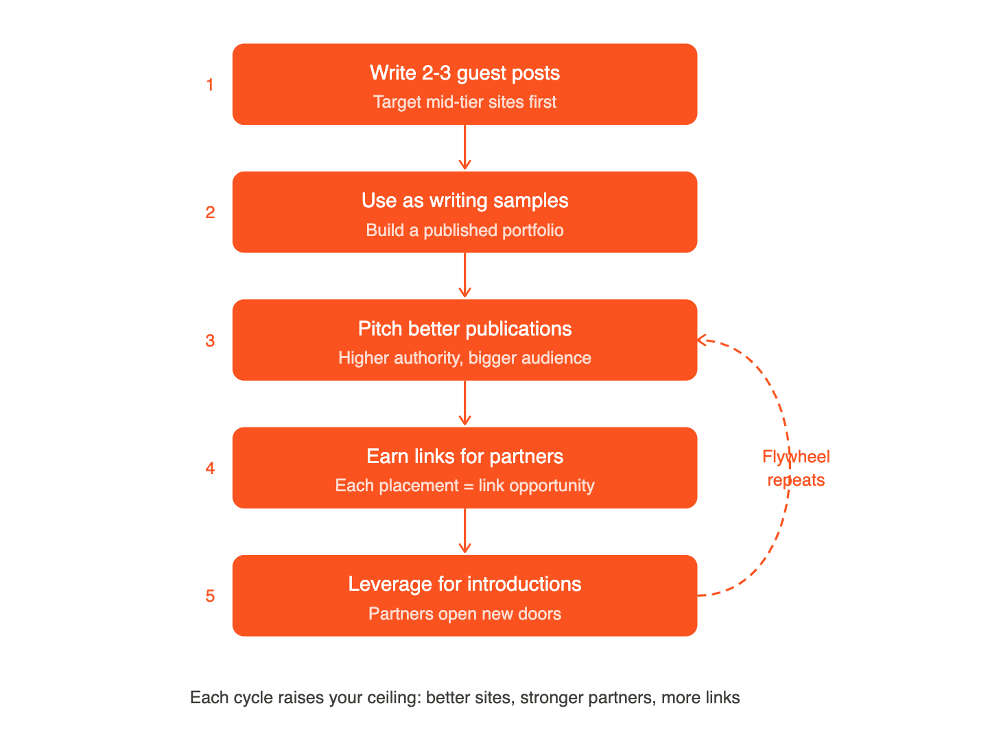 But it's a must-have. Guest posts establish you as an authority in your niche, and each one creates two to four link building opportunities. You can include your own backlink, add links for partners (which strengthens your relationships), and use the published piece as a sample when pitching higher-authority sites.
