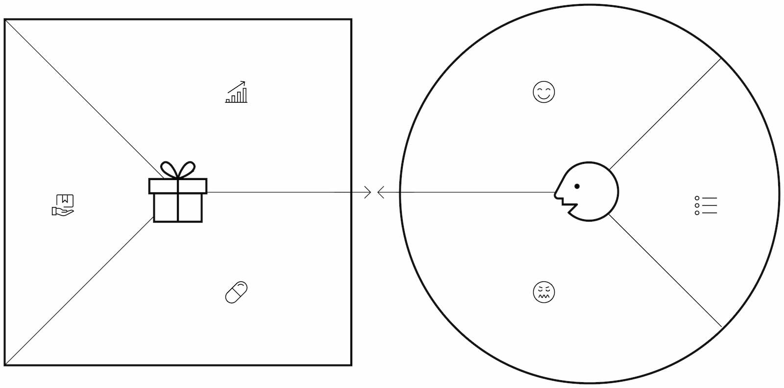 The left side is your Value Map: how your product responds to each element of the customer profile.