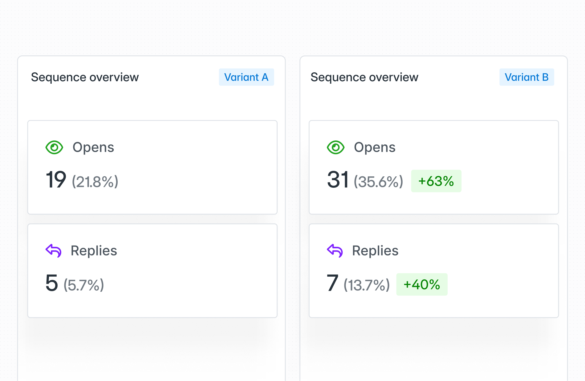 Test different email variants using A/B testing within Sequences.